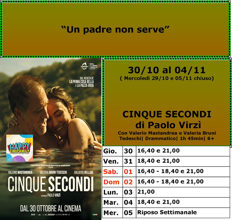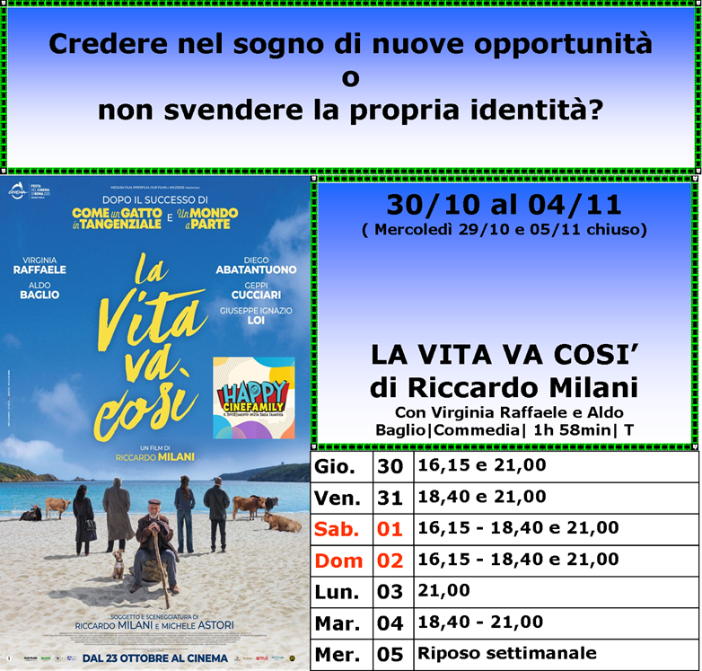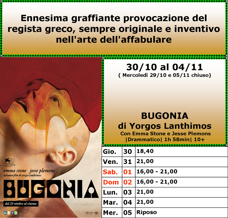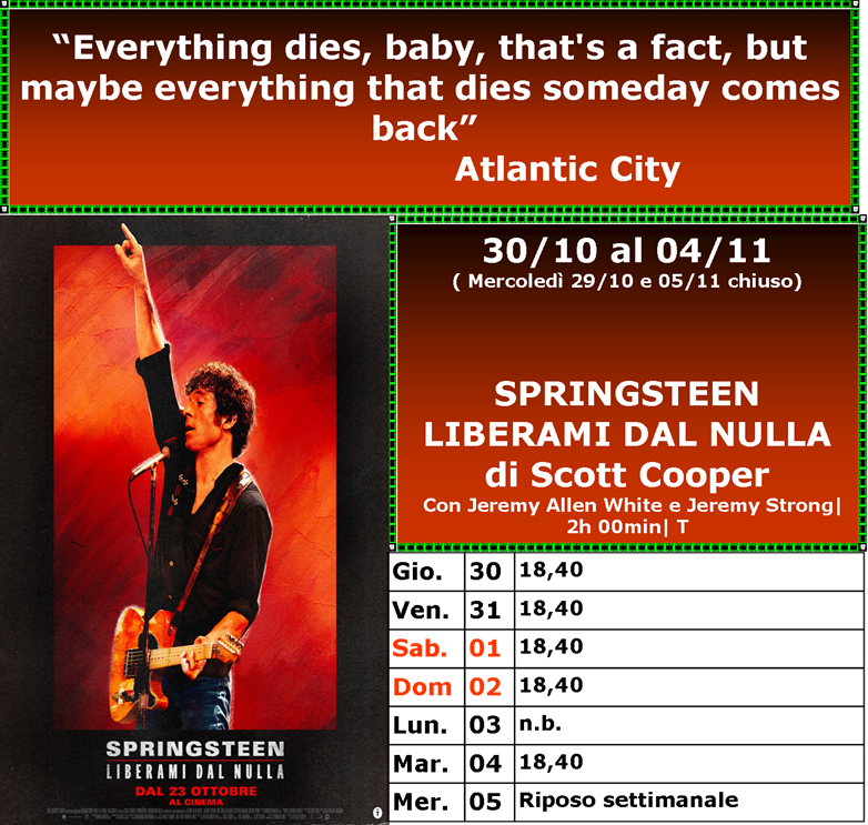 Dal 30/10 Proiettiamo LA VITA VA COSI’ CINQUE SECONDI SPRINGSTEEN: LIBERAMI DAL NULLA BUGONIA LA FAMIGLIA HALLOWEEN |