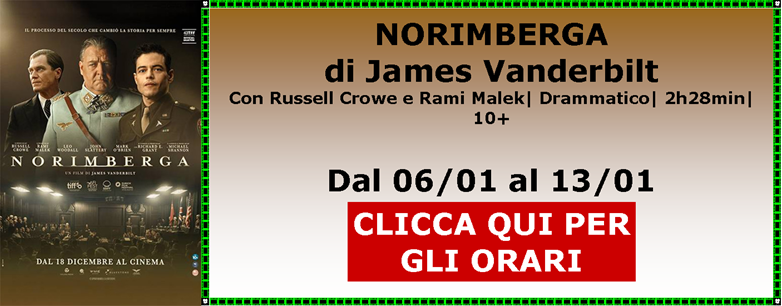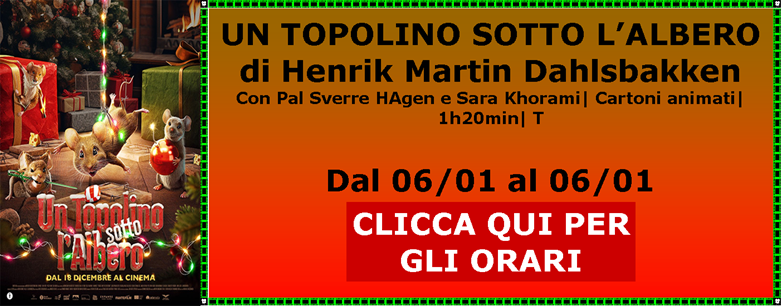 Dal 06/01 Proiettiamo AVATAR - FUOCO E CENERE UN TOPLINO SOTTO L’ALBERO ZOOTROPOLIS 2 PRIMAVERA NORIMBERGA BUEN CAMINO SPONGEBOB - UN’AVVENTURA DI PIRATI SONG SUNG BLUE - UNA MELODIA D’AMORE L’AMICO FEDELE |