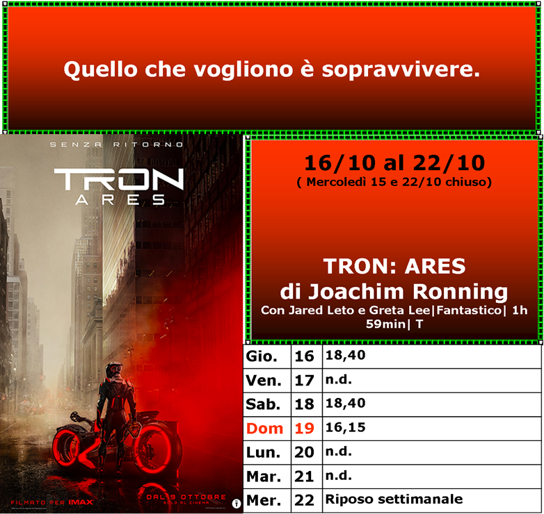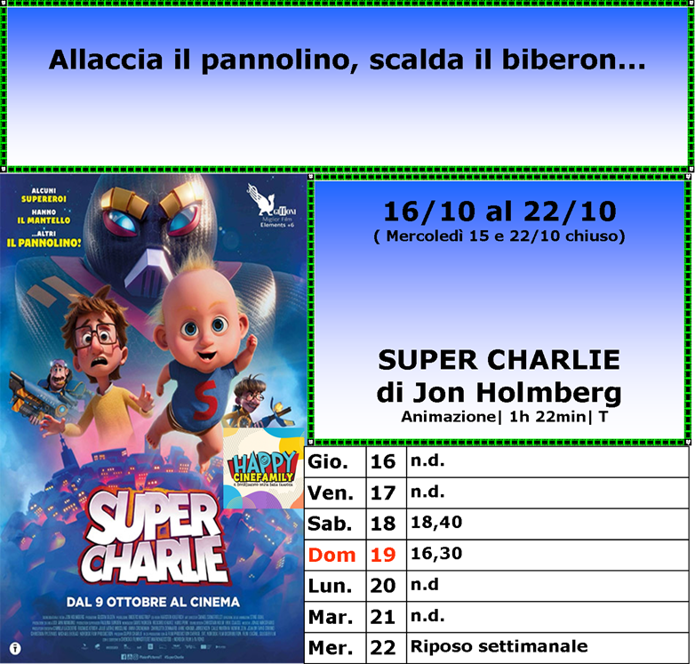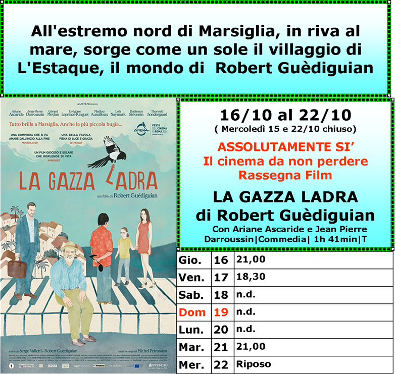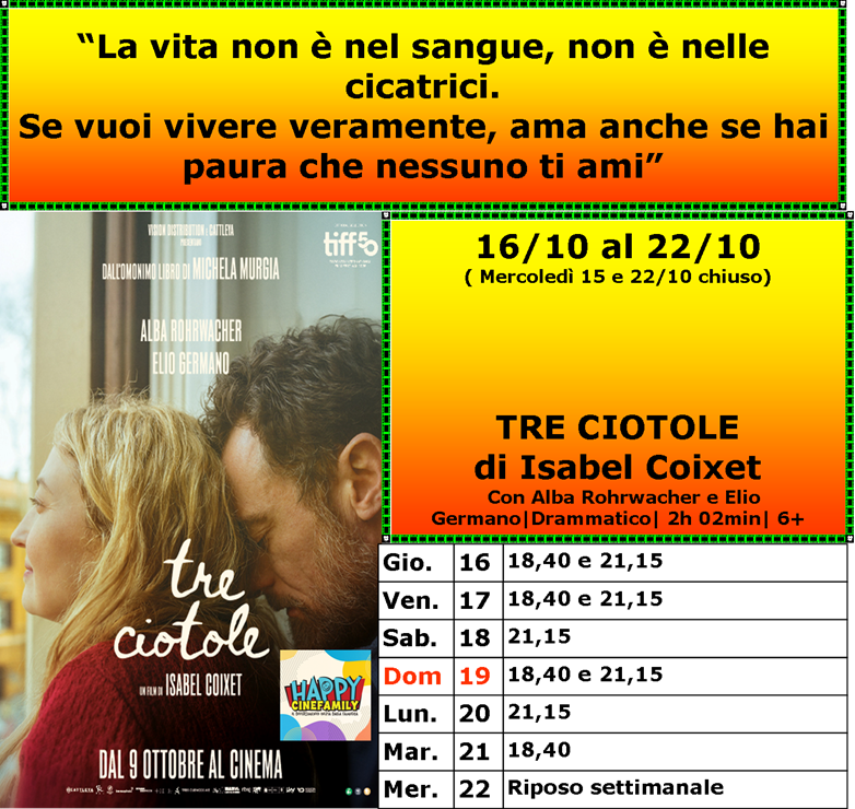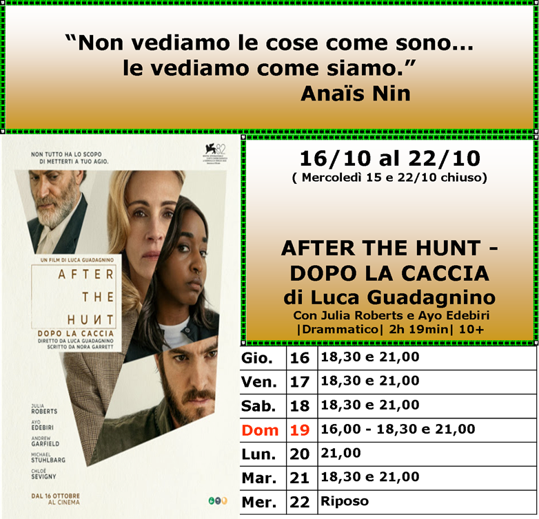 Dal 16/10 Proiettiamo TRE CIOTOLE AFTER THE HUNT - DOPO LA CACCIA SUPER CHARLIE PER TE TRON ARES LA GAZZA LADRA |