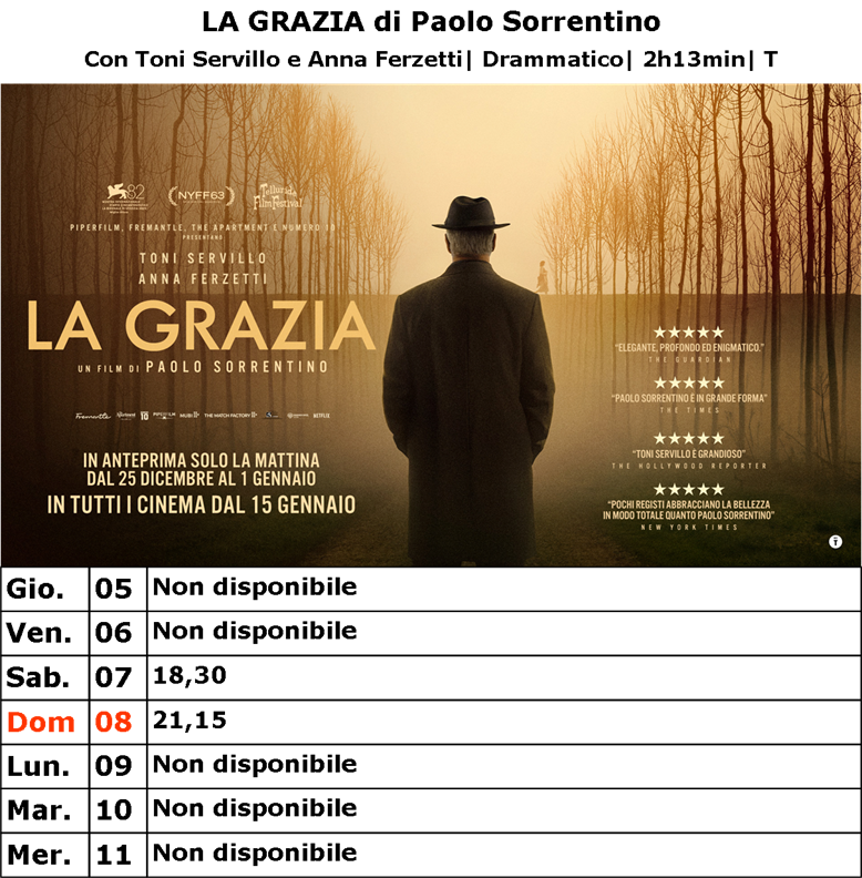 Gio 05 Ore 21,00 Ven 06 Ore 18,30 Mar 10 Ore 21,00