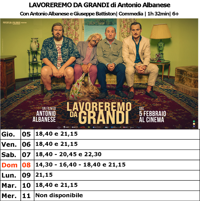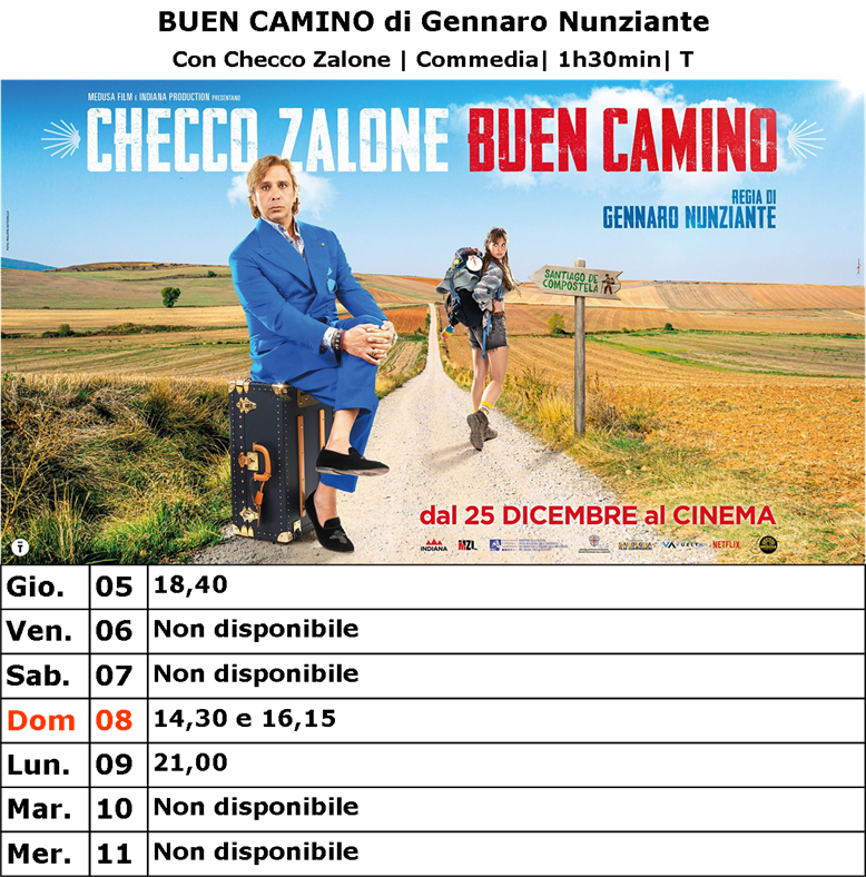 Dal 05/02 Proiettiamo BUEN CAMINO LA GRAZIA AGATHA CHRISTIAN - DELITTO SULLE NEVI LAVORERAMO DA GRANDI STRAY KIDS - THE DOMINATE EXPRIENCE UNA SCOMODA CIRCOSTANZA |