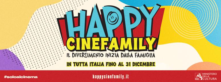 Per i film, italiani ed europei, contrassegnati con il logo HAPPY CINEFAMILY SCONTO DI €URO 2,50 A BIGLIETTO RISERVATO ALLE FAMIGLIE composte da due adulti e un ragazzo, con età inferiore a 12 anni. Lo stesso sconto di Euro 2,50 si applica a ciascun ulteriore ragazzo del medesimo gruppo famigliare di età inferiore a 12 anni. Fino al 31/12. |
