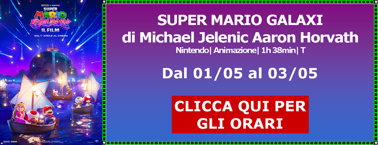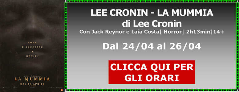 Dal 23/04 Proiettiamo MICHAEL LEE CRONIN - LA MUMMIA SUPER MARIO GALAXY IL FIGLIO DEL DESERTO IL CASO 137 IL BENE COMUNE IL FILO DEL RICATTO